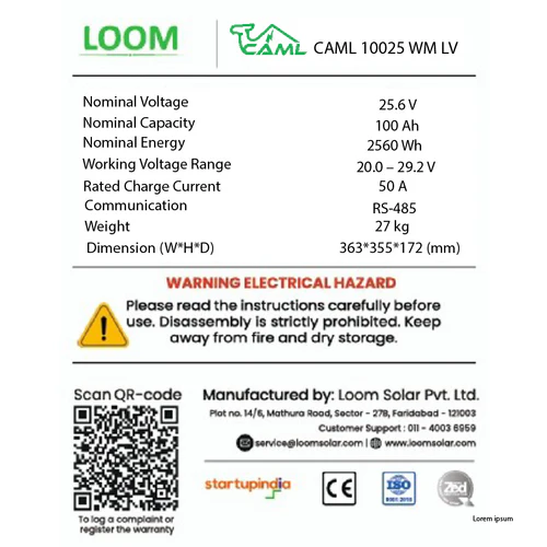 CAML 25.6 V 100 Ah, 2.56 kWh LiFePO4 Wall-Mount – Lithium Battery