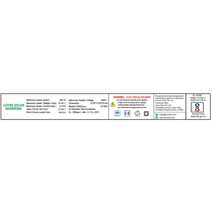 Loom Solar Panel – SHARK 590 Wp | N-Type TOPCon Bifacial 16BB (Pack of 2)